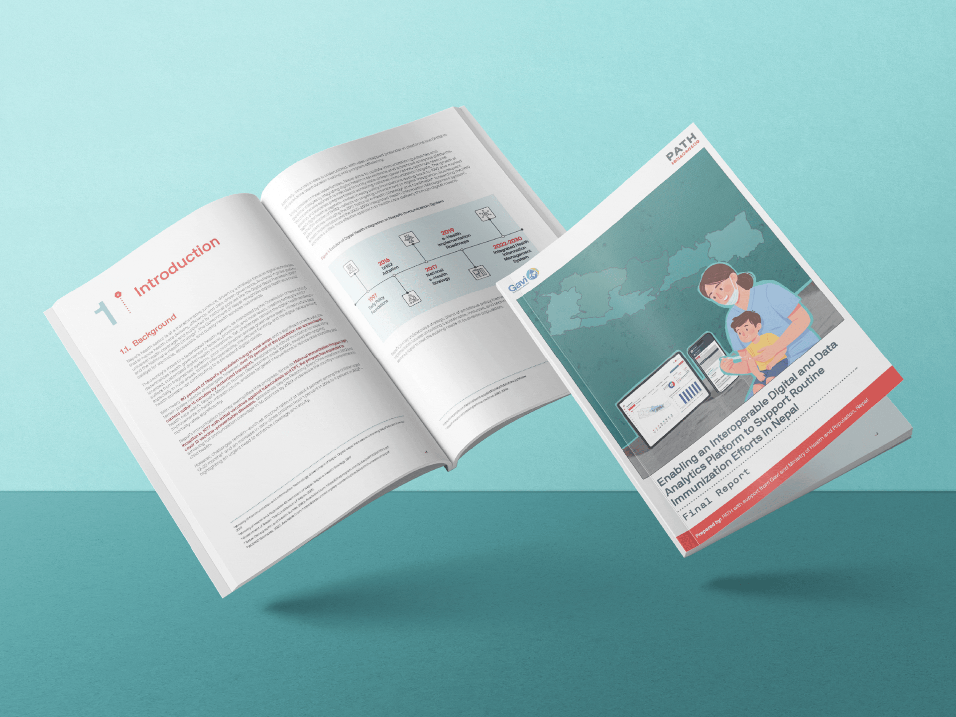 PATH | Report DesignProduced with PATH and the Government of Nepal, this report assesses the country's Immunization Ecosystem and its roadmap toward a "Unified Digital Analytics Platform" and universal health coverage by 2030. It translates complex policy and data into a strategic guide for improving vaccine equity through digital transformation.