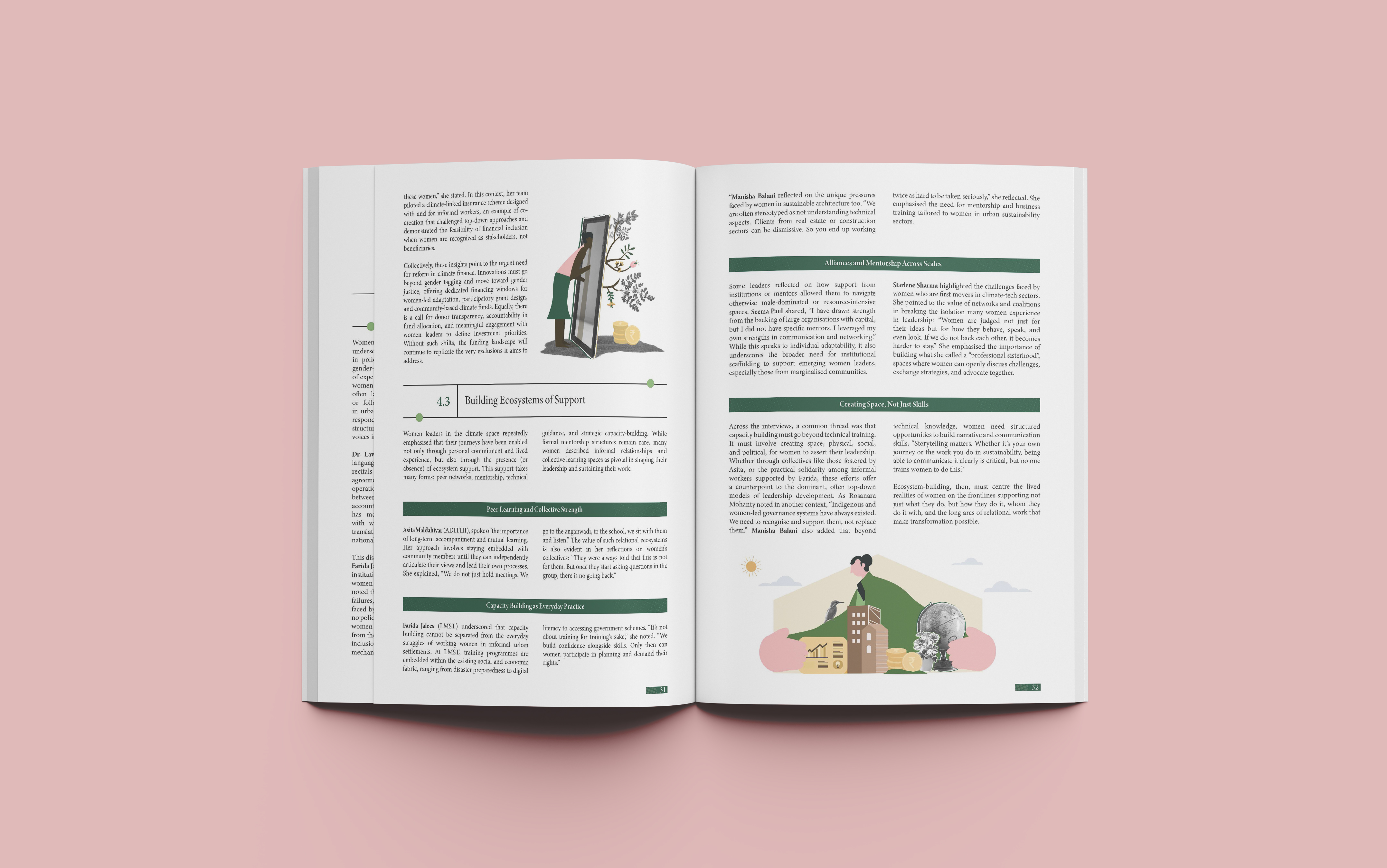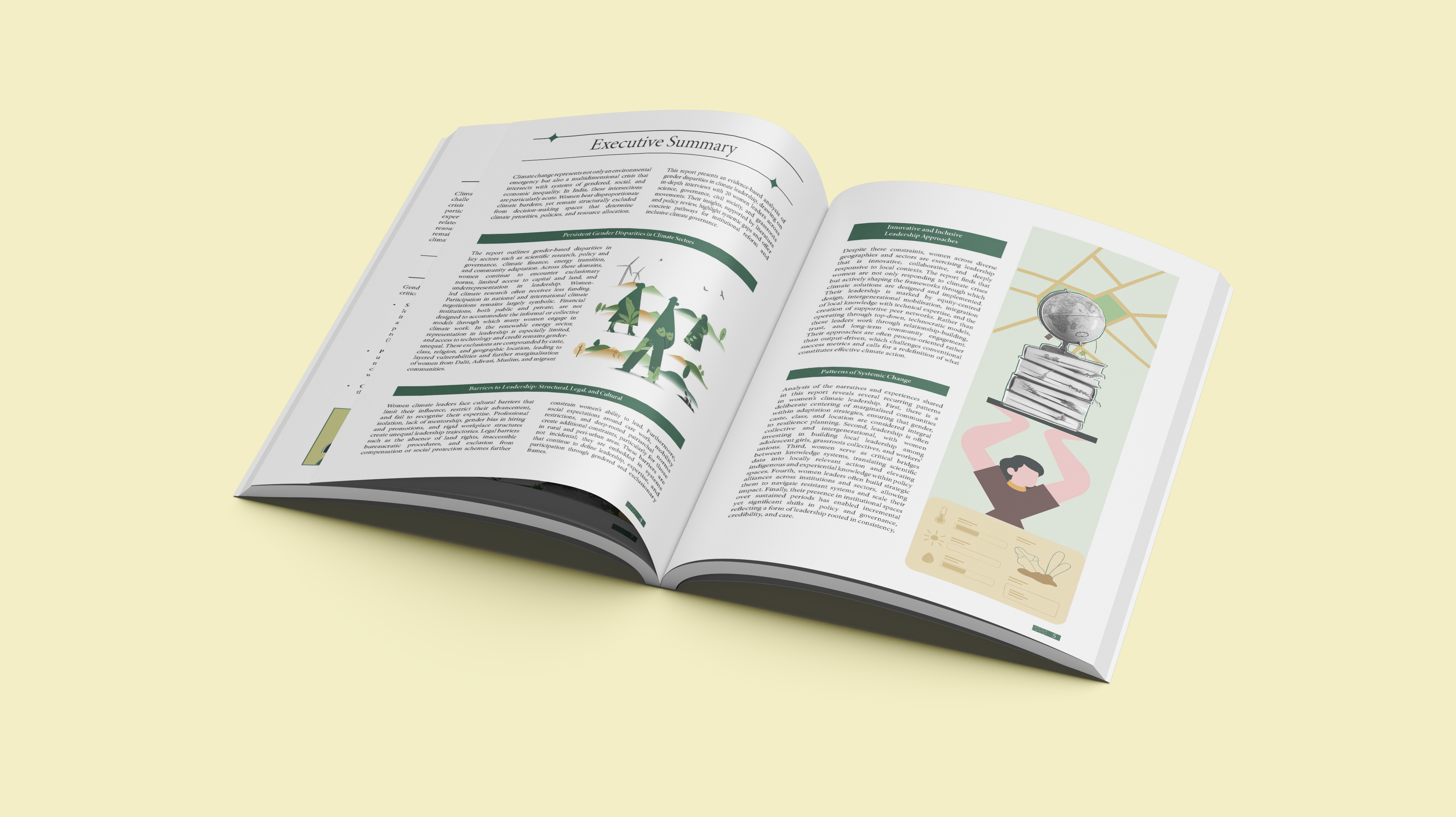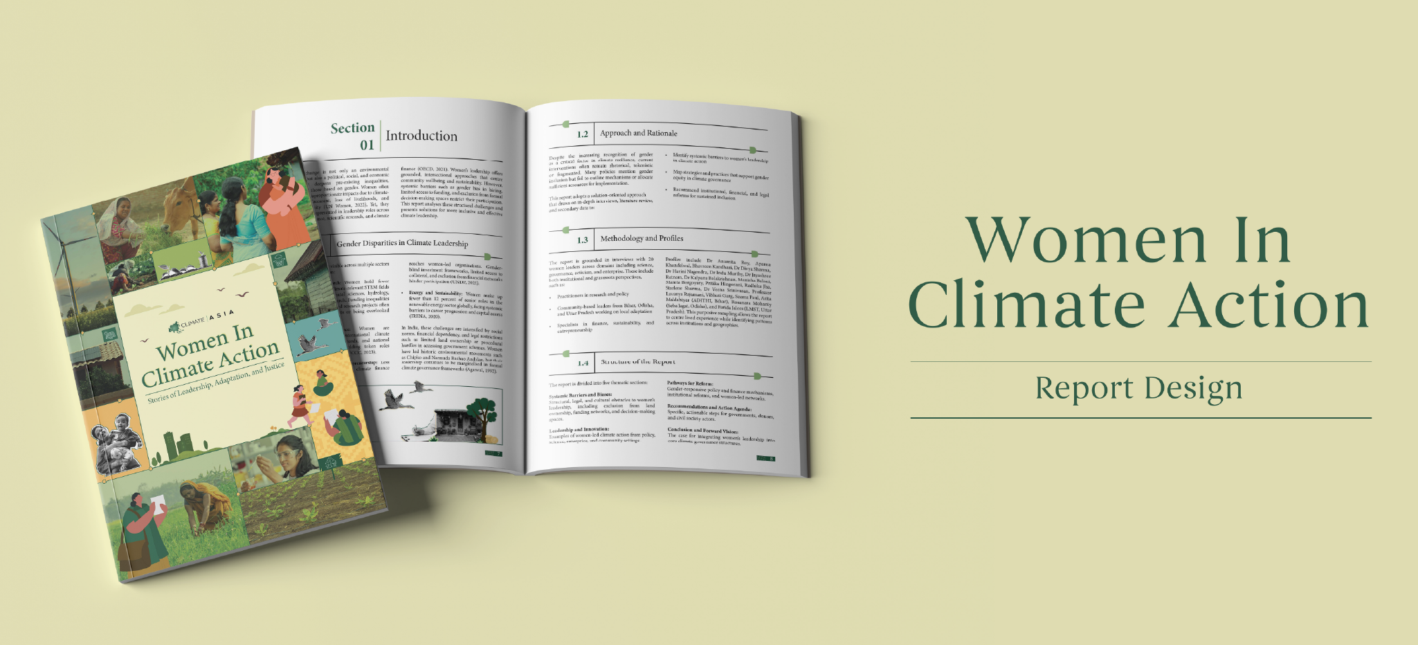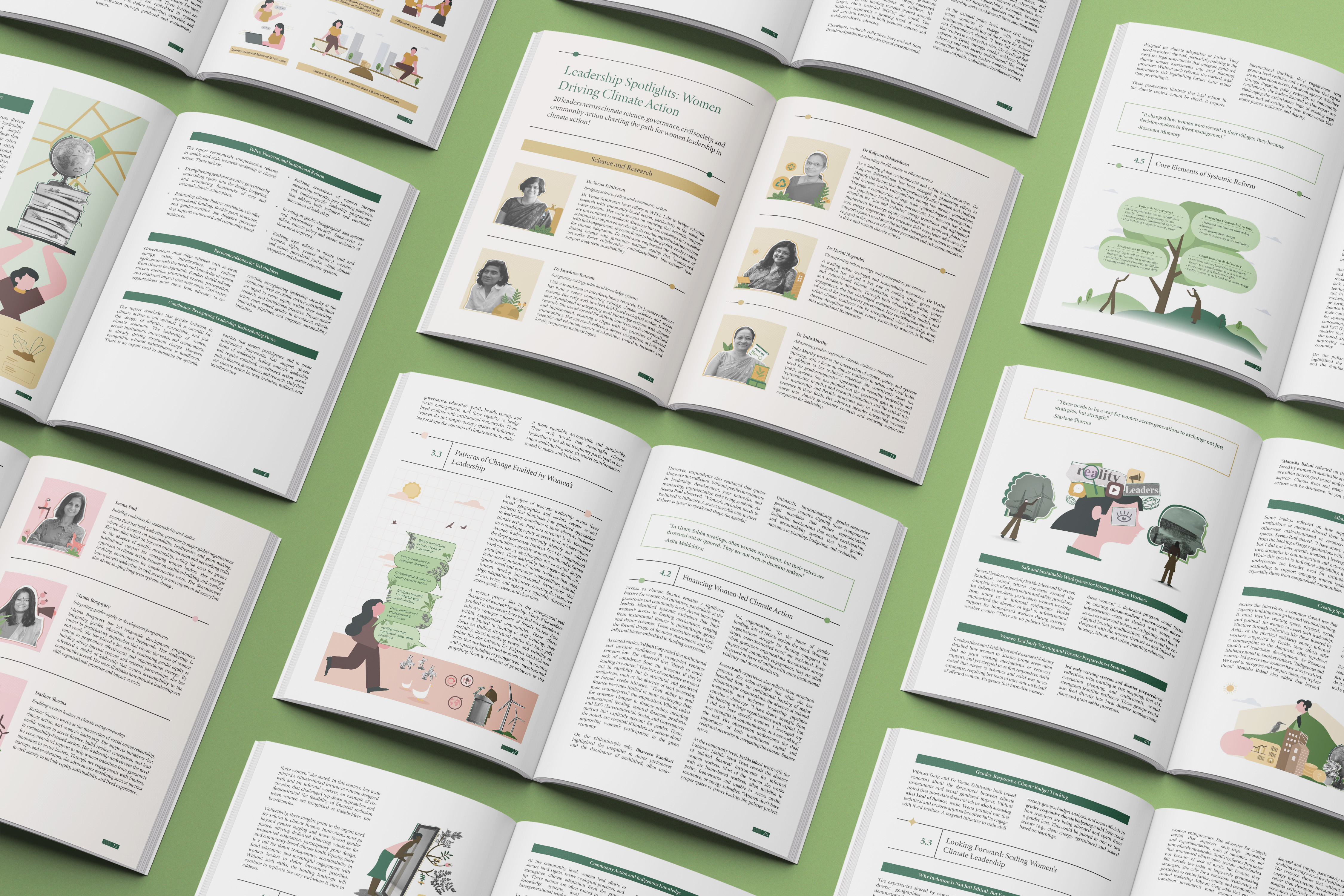 This editorial design project for Climate Asia focuses on the intersection of gender disparities and climate resilience. The report analyzes structural barriers to women’s leadership while highlighting solution-oriented approaches derived from interviews with 20 women leaders across science, governance, and grassroots sectors. By centering lived experiences and the Sustainable Livelihoods Framework, the publication provides a strategic roadmap for institutional and financial reforms to foster inclusive climate governance.