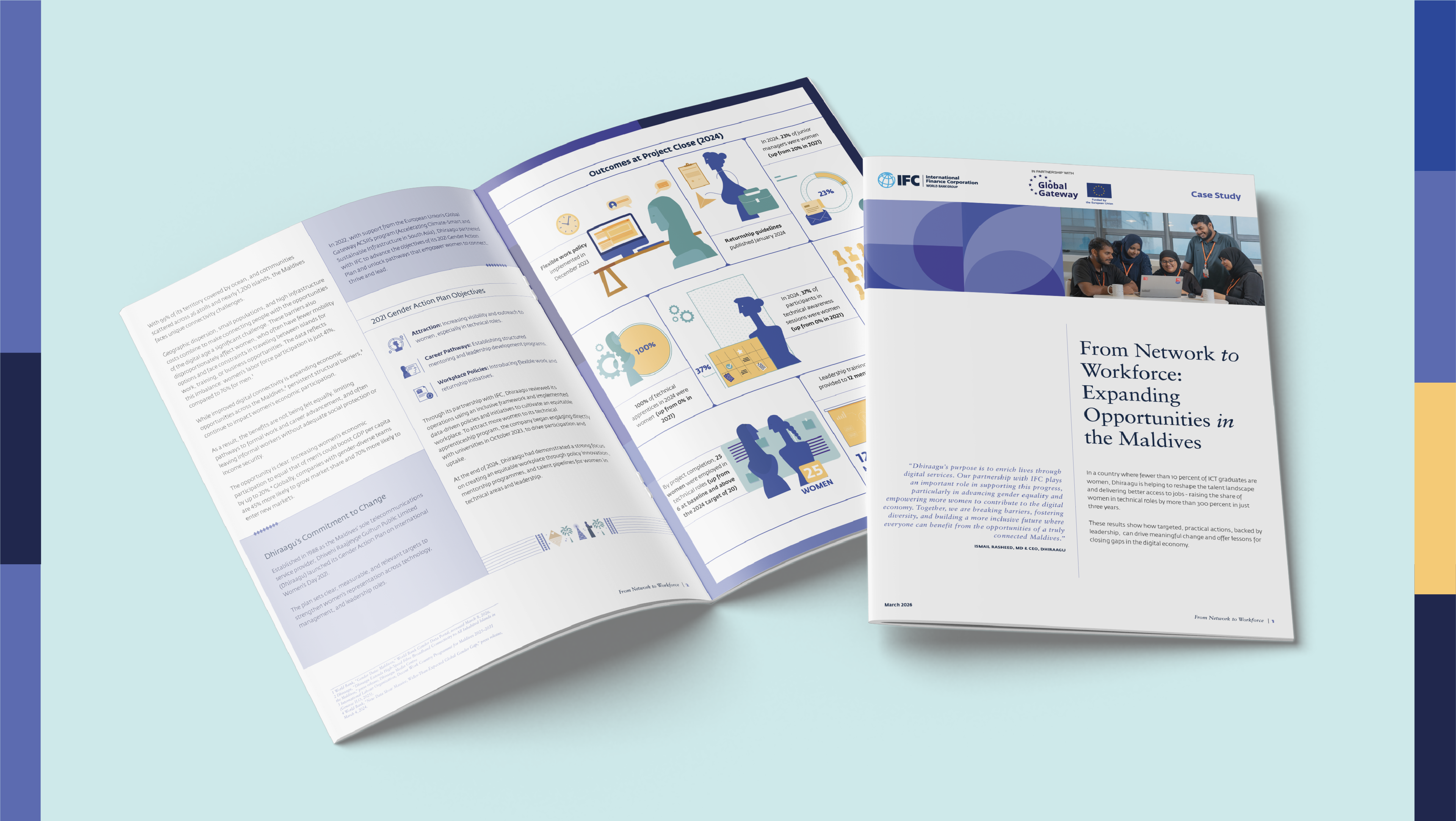The content and visual system balanced institutional clarity with human-centred storytelling, ensuring alignment with IFC’s design standards while drawing from local cultural references. The final output positions the IFC Dhiraagu collaboration as a practical model for advancing gender inclusion through intentional policy, skills development, and leadership investment.