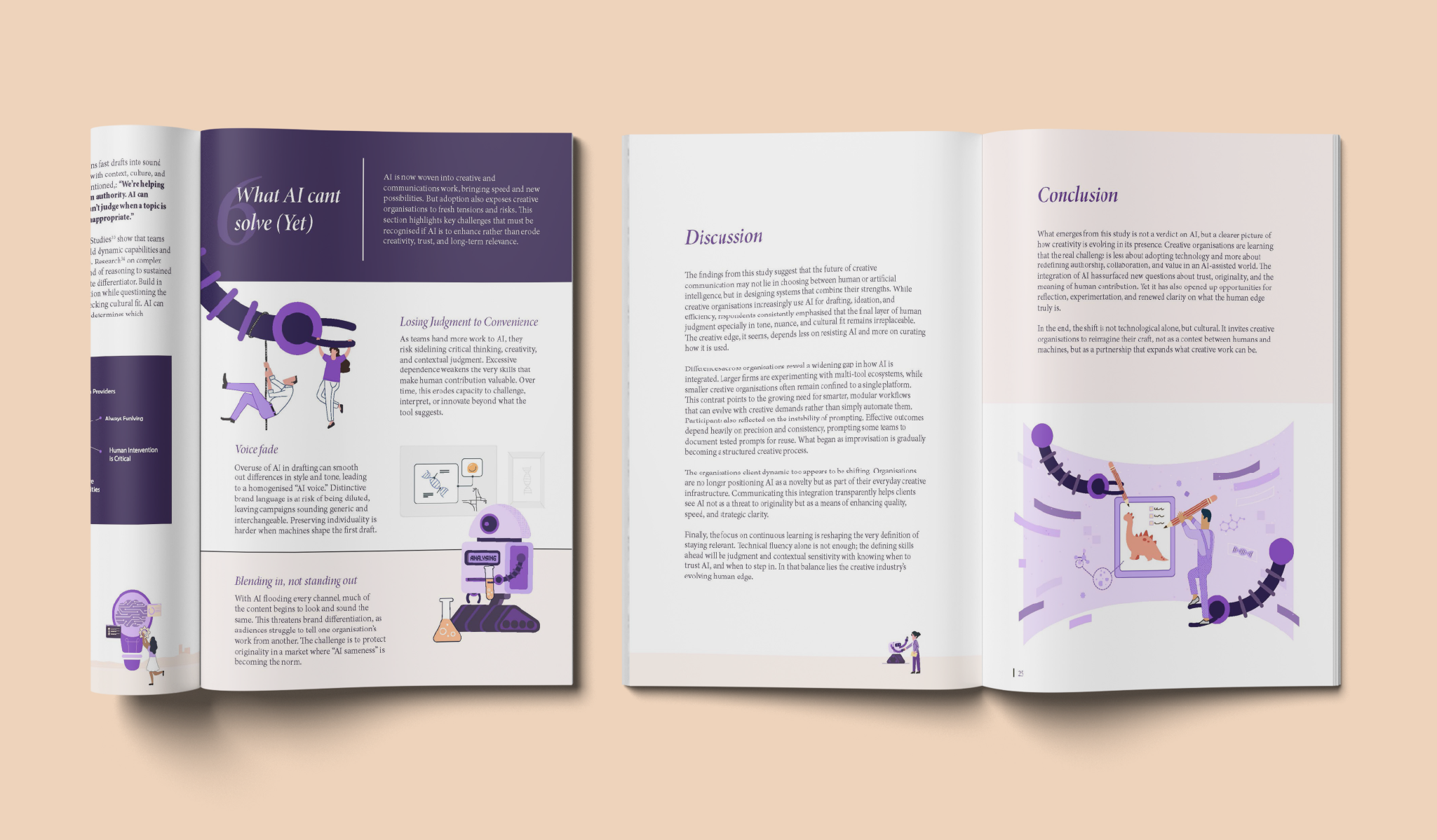 The Human Edge Report: AI, Creativity and the Future of Communication is a strategic research publication examining how Artificial Intelligence is reshaping creative, corporate, and development communications. The report investigates AI’s expanding yet uneven role across organisations, analysing adoption patterns, risks, and implications for originality, authorship, trust, and professional standards. Drawing insights from professionals across global institutions and industries, the study positions AI not as a replacement for human capability, but as a catalyst redefining creative value.